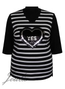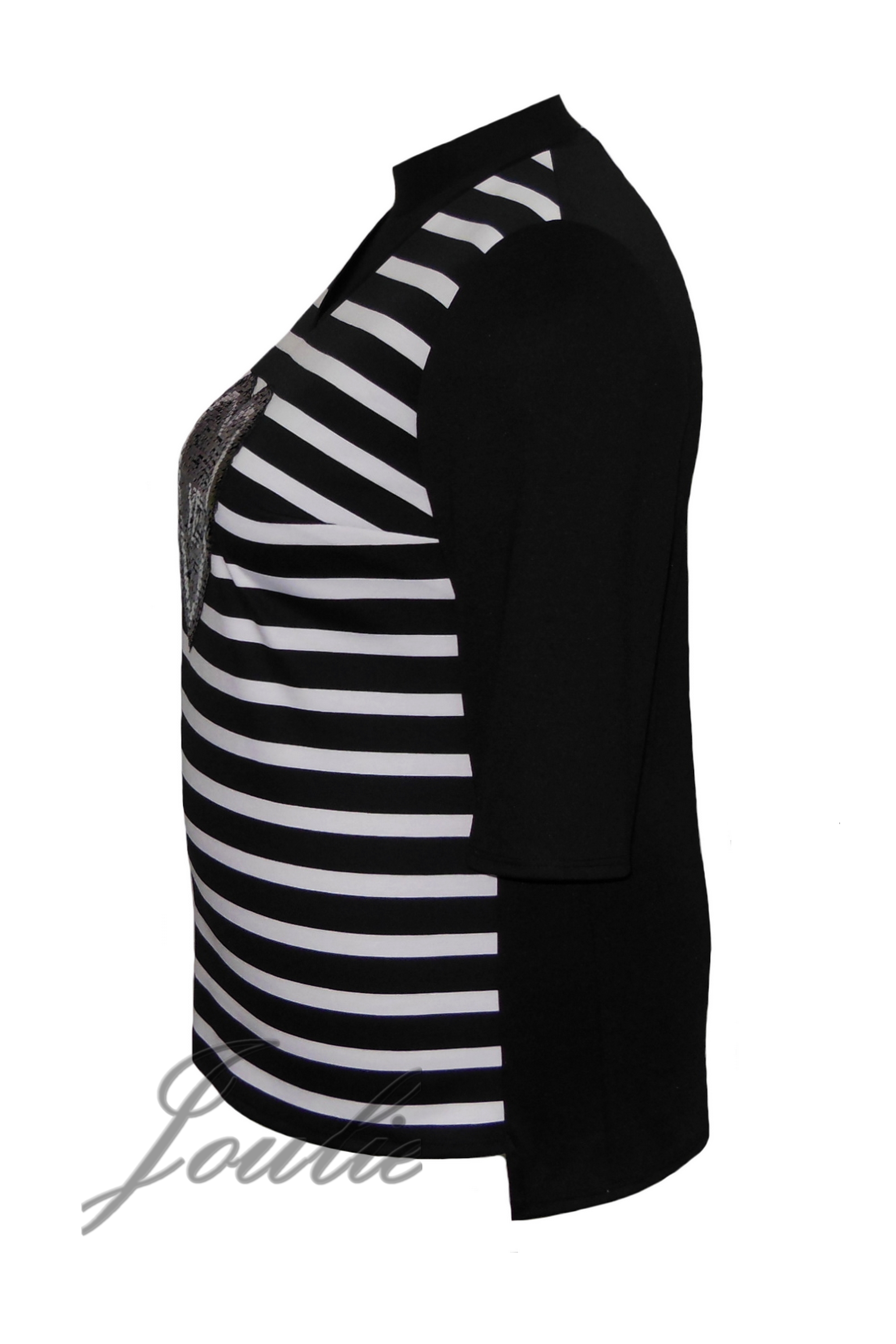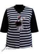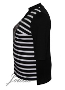 Блузка прямого силуэта из трикотажа в полоску. На полочке аппликация. Рукав 3/4.