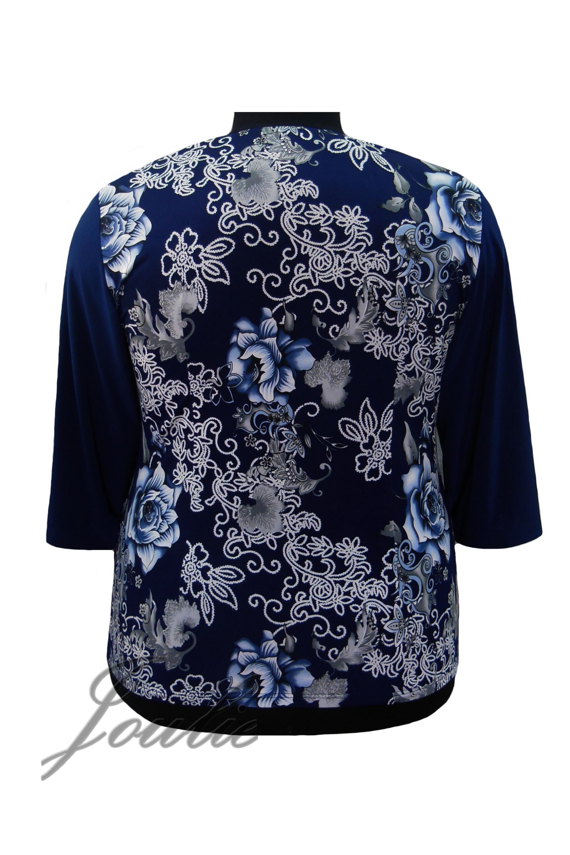 Блуза полуприлегающего силуэта из трикотажа. Рукав 3/4. Вырез горловины фигурный.