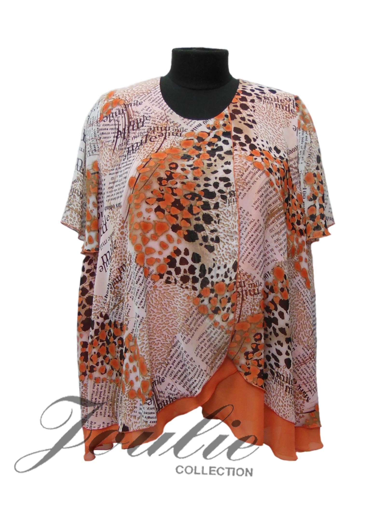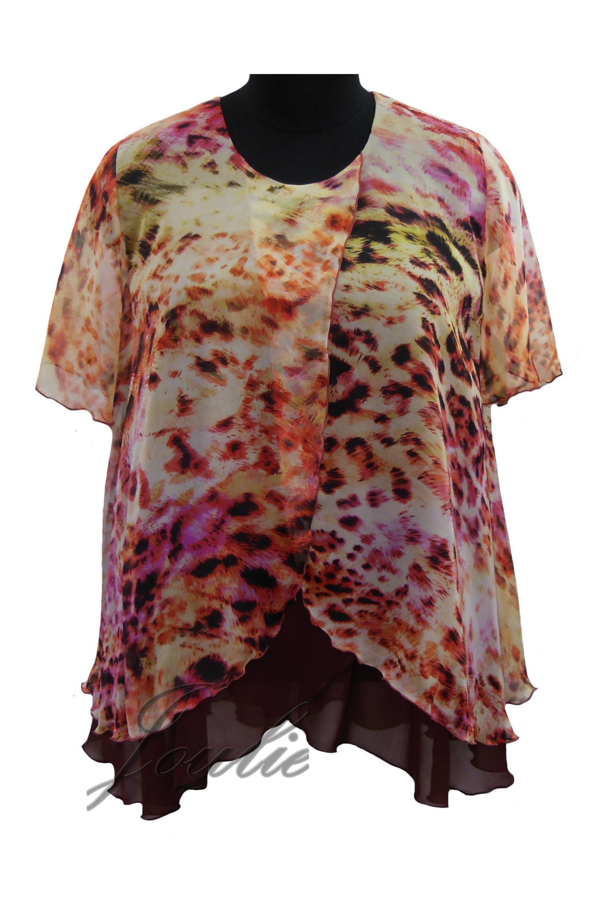 Двухслойная блуза из шифона расклешенного силуэта.