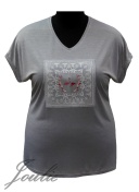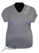 Блуза полуприлегающего силуэта из трикотажа. Рукав спущенный короткий. Вырез V-образный.