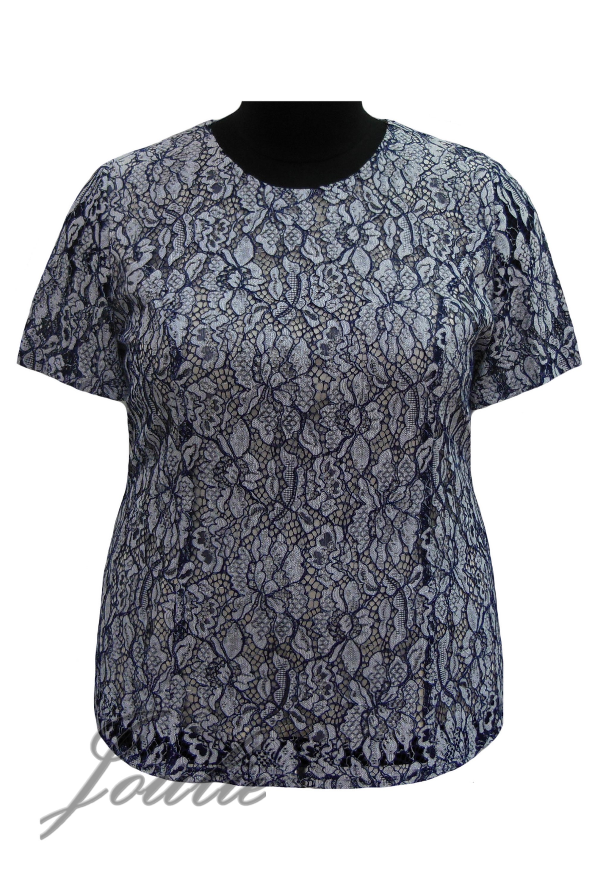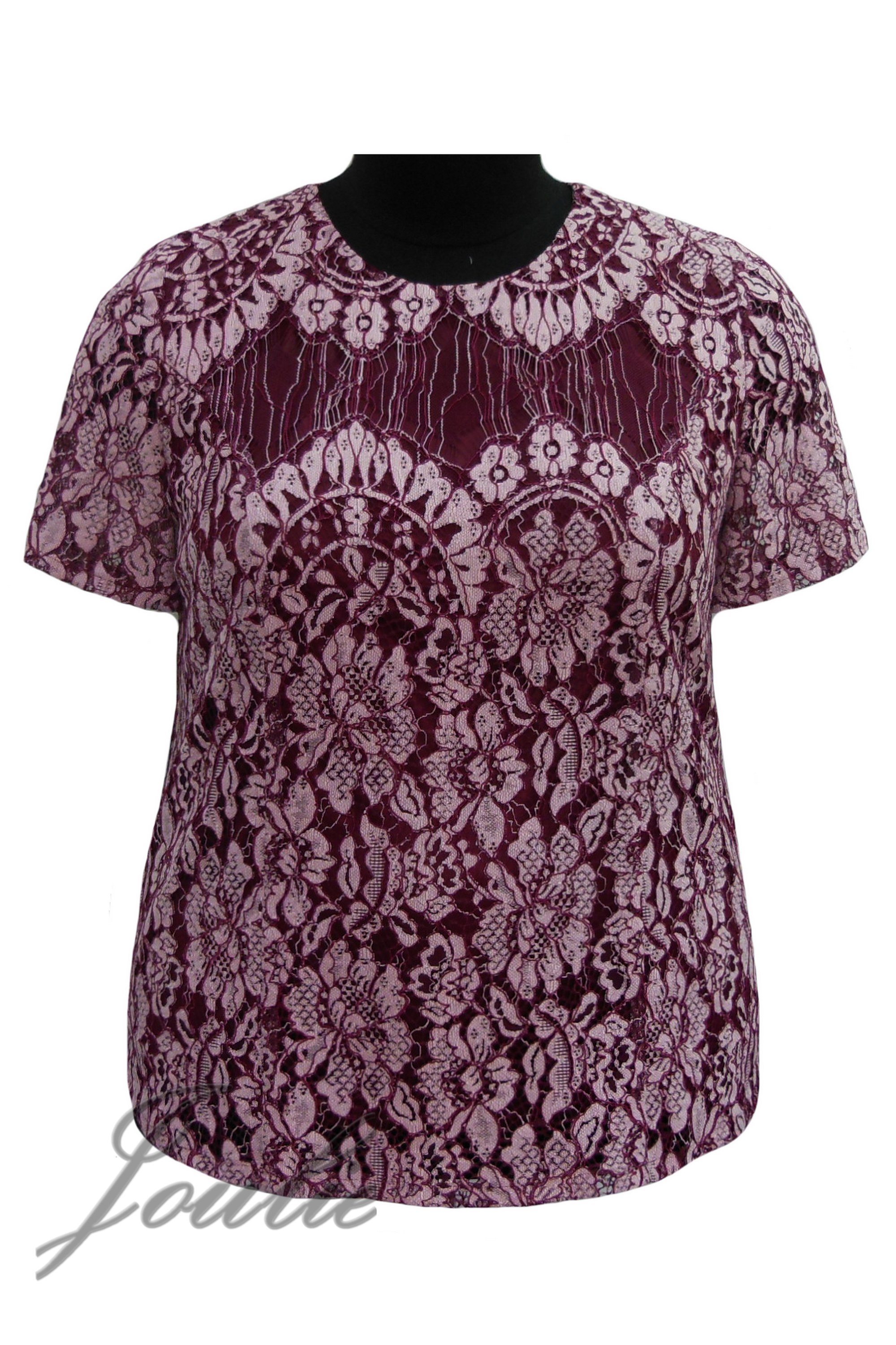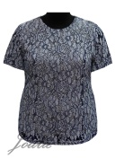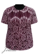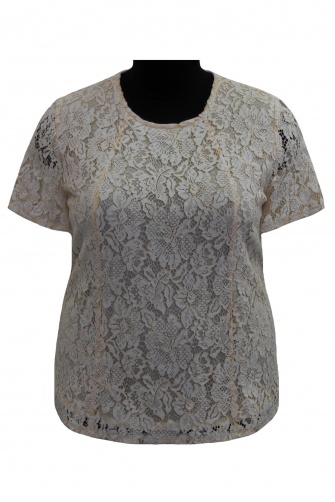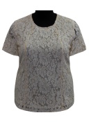 Блуза полуприлегающего силуэта из кружевного полотна с застежкой на спинке на пуговицу. Рукав короткий