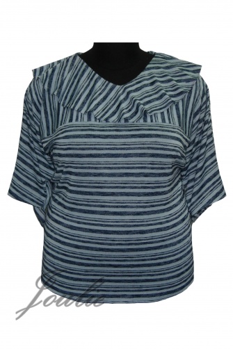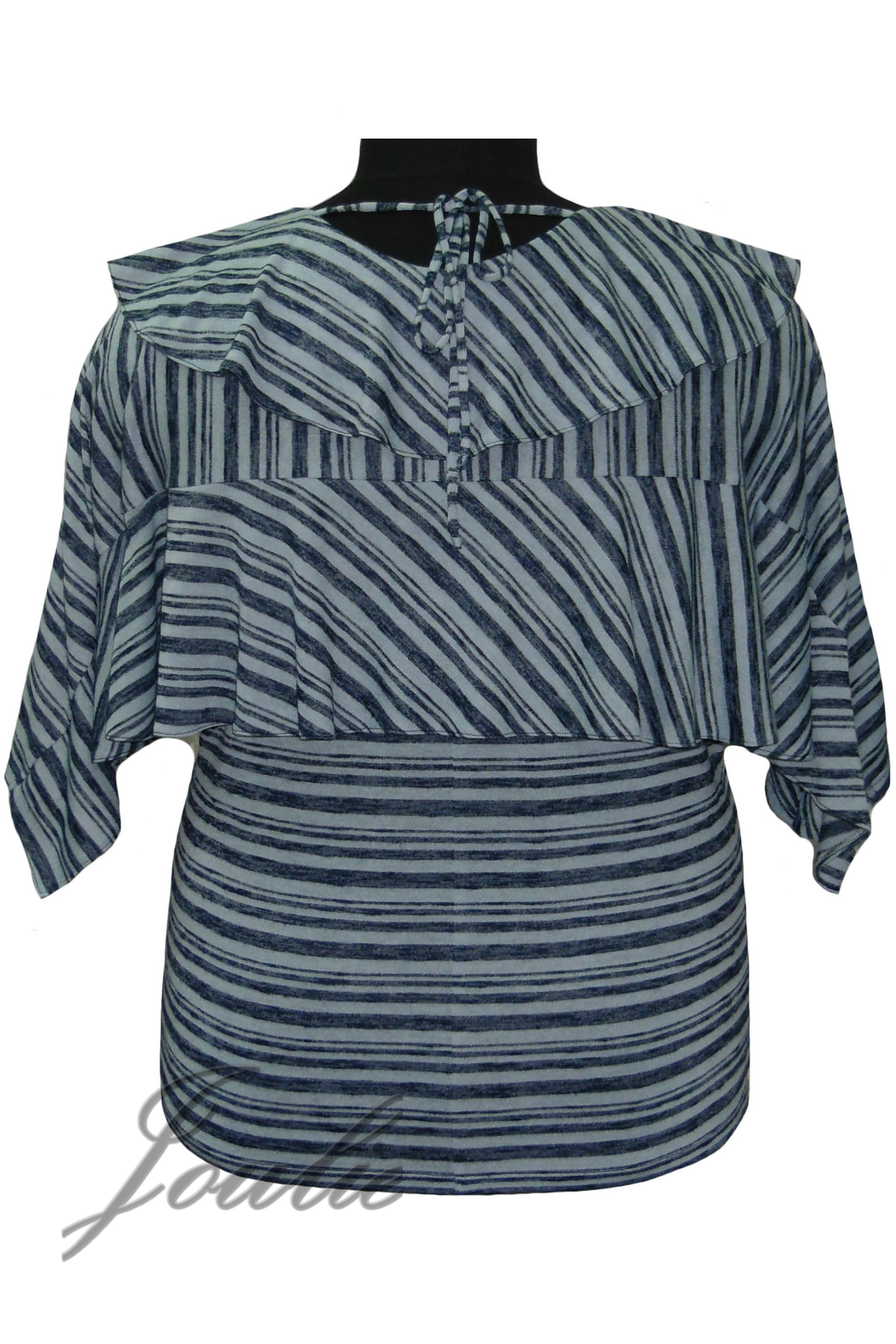 Блуза из трикотажа с рукавами "летучая мышь" Декорирована воланом по горловине и на спинке.