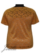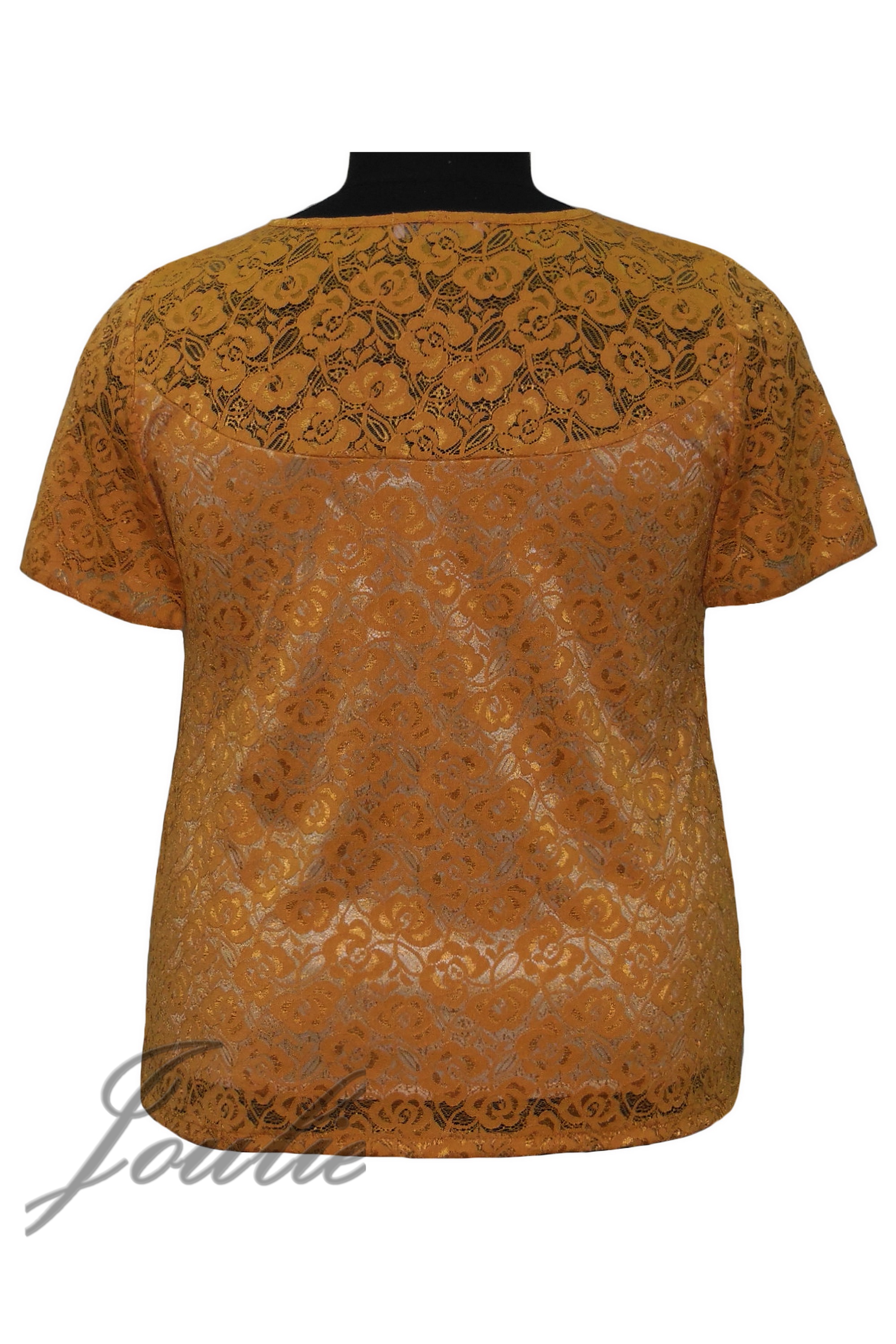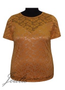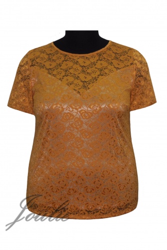 Блуза полуприлегающего силуэта из гипюра. Вырез горловины круглый. Рукав короткий.