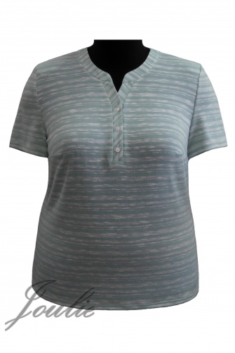 Блузка полуприлегающего силуэта из трикотажа. На полочке застежка на пуговицы. Рукав короткий.