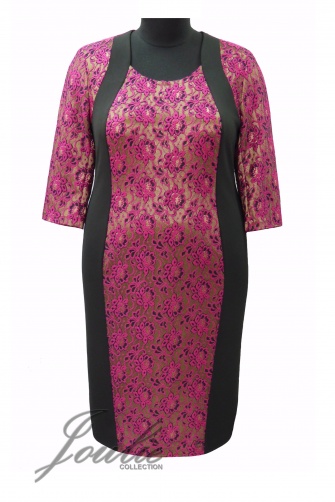 Платье полуприлегающего силуэта комбинированное из трикотажа и кружева. Рукав 3\4. Вырез горловины фигурный.