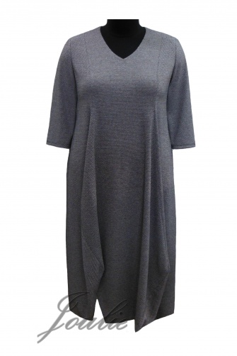Платье свободного силуэта из трикотажа. На полочке и спинке выполнены рельефы в виде зигзага. Рукав 3/4.