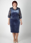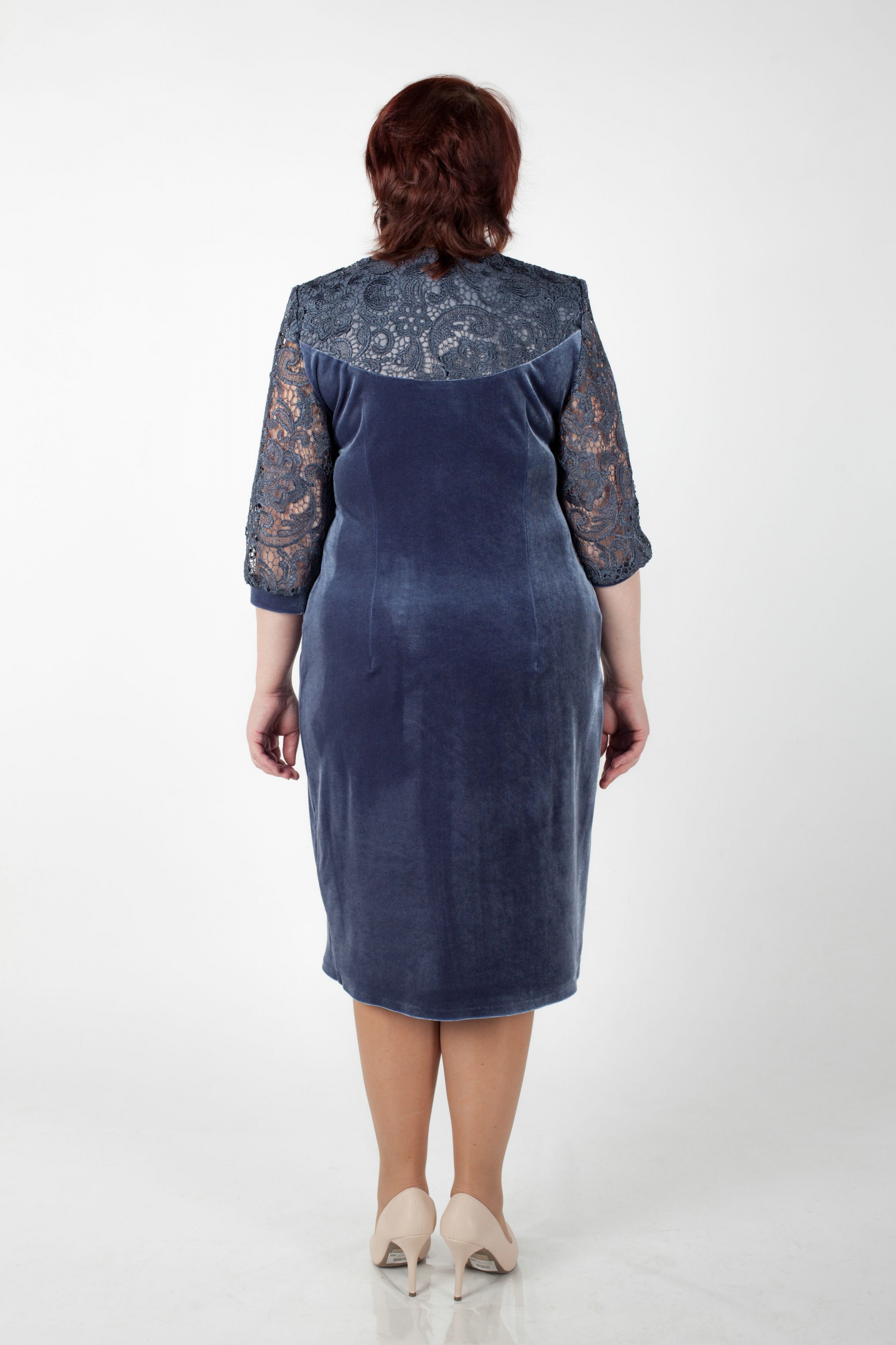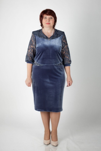 Платье из кружева и бархата, Прилегающий силуэт, рукав 3/4.