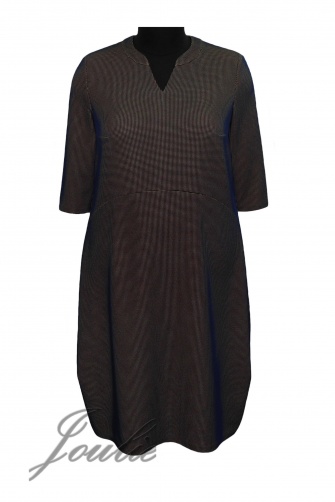 Платье свободного силуэта из трикотажа. На полочке и по спинке фигурные кокетки. Рукав 3/4.