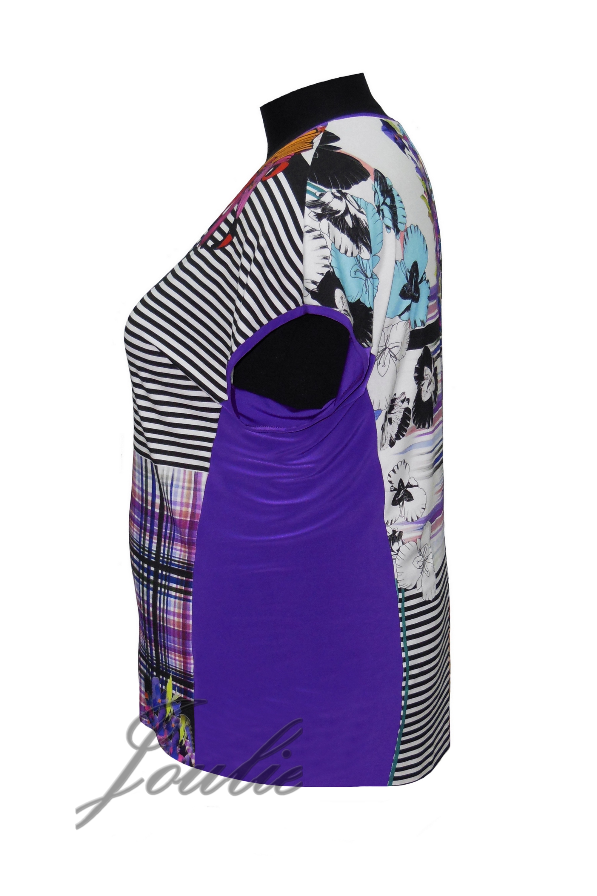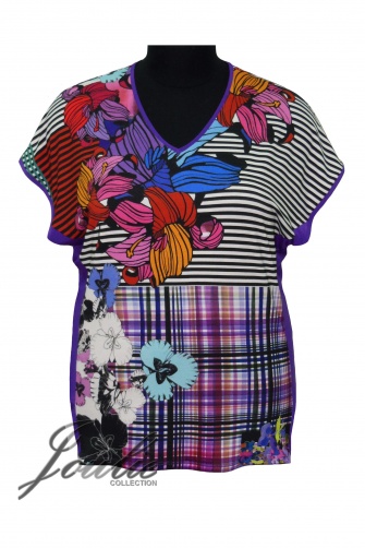 Туника из трикотажа прямого силуэта. Рукав спущеный короткий. Вырез V-образный