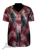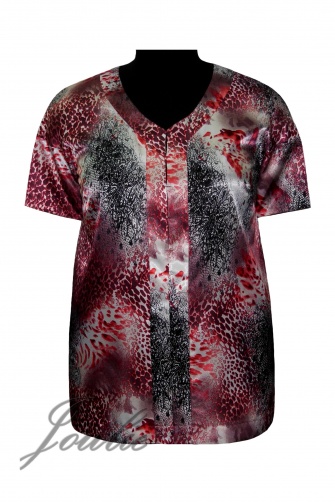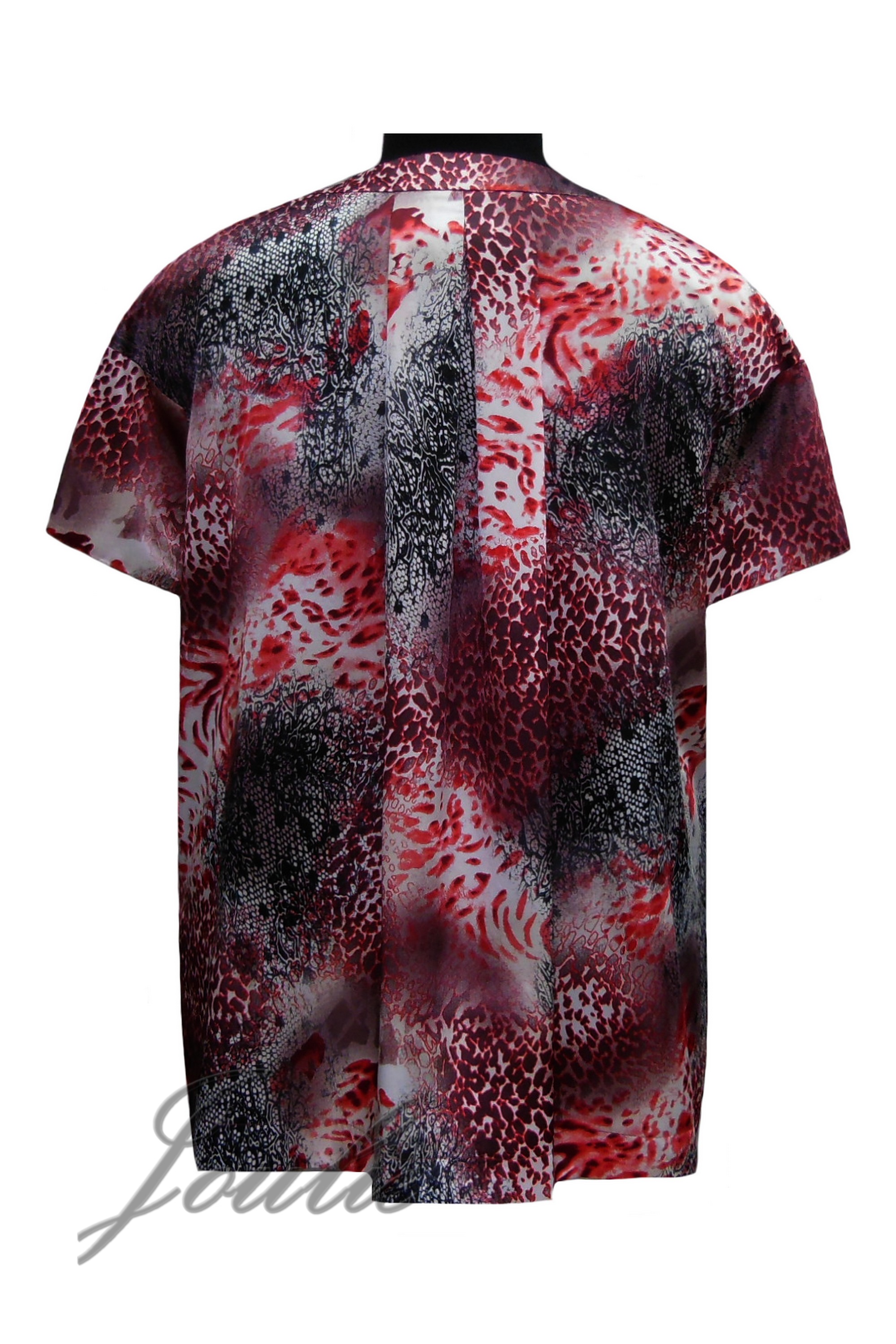 Туника прямого силуэта из ткани. На рукавах и по центру спинки заложены складки. В боковых швах разрезы.