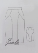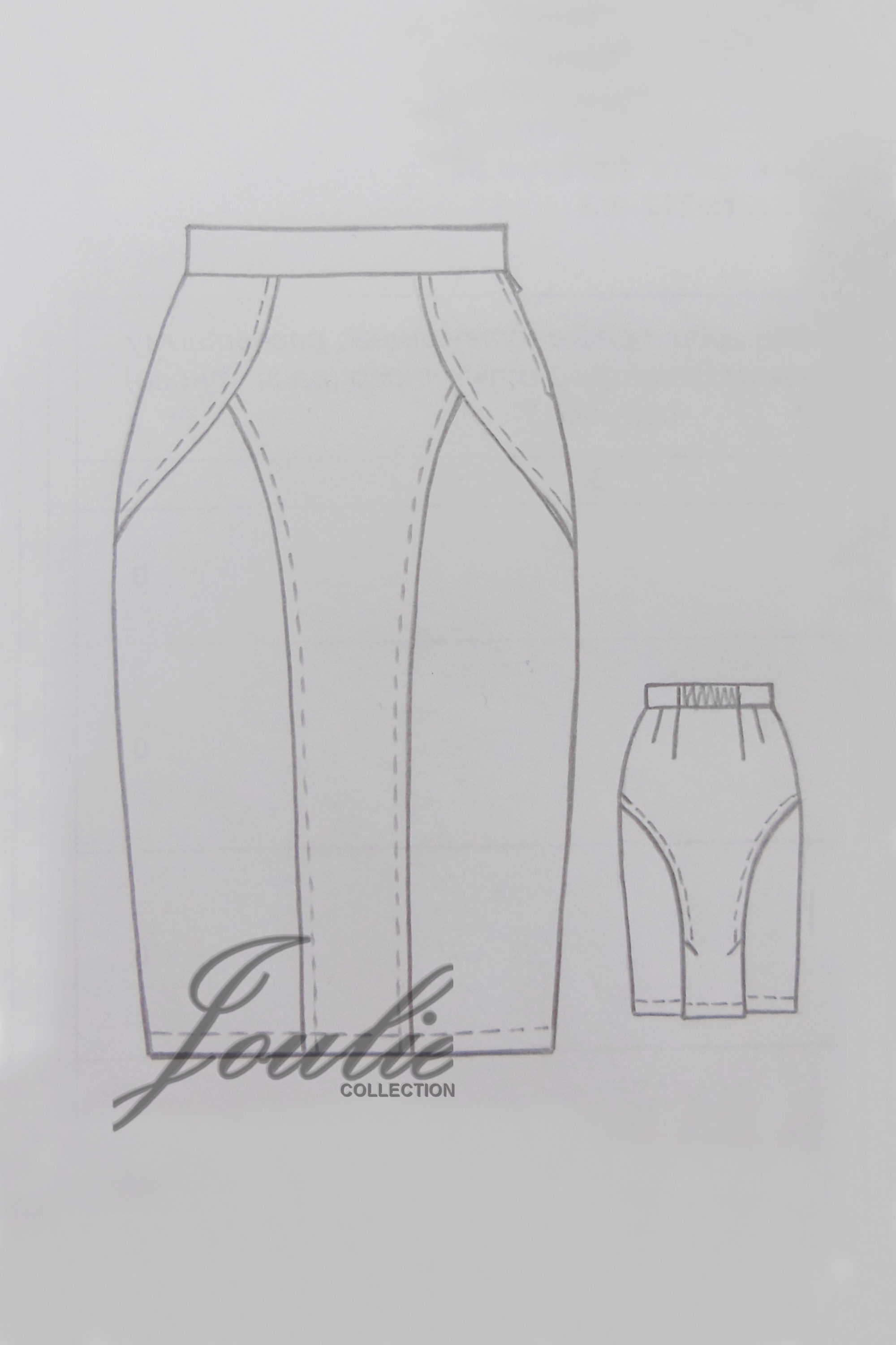 Прямая юбка, зауженная книзу. Впереди рельефы отделаны декоративной строчкой, Сзади рельефы переходят в шлицы.