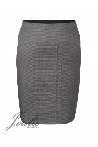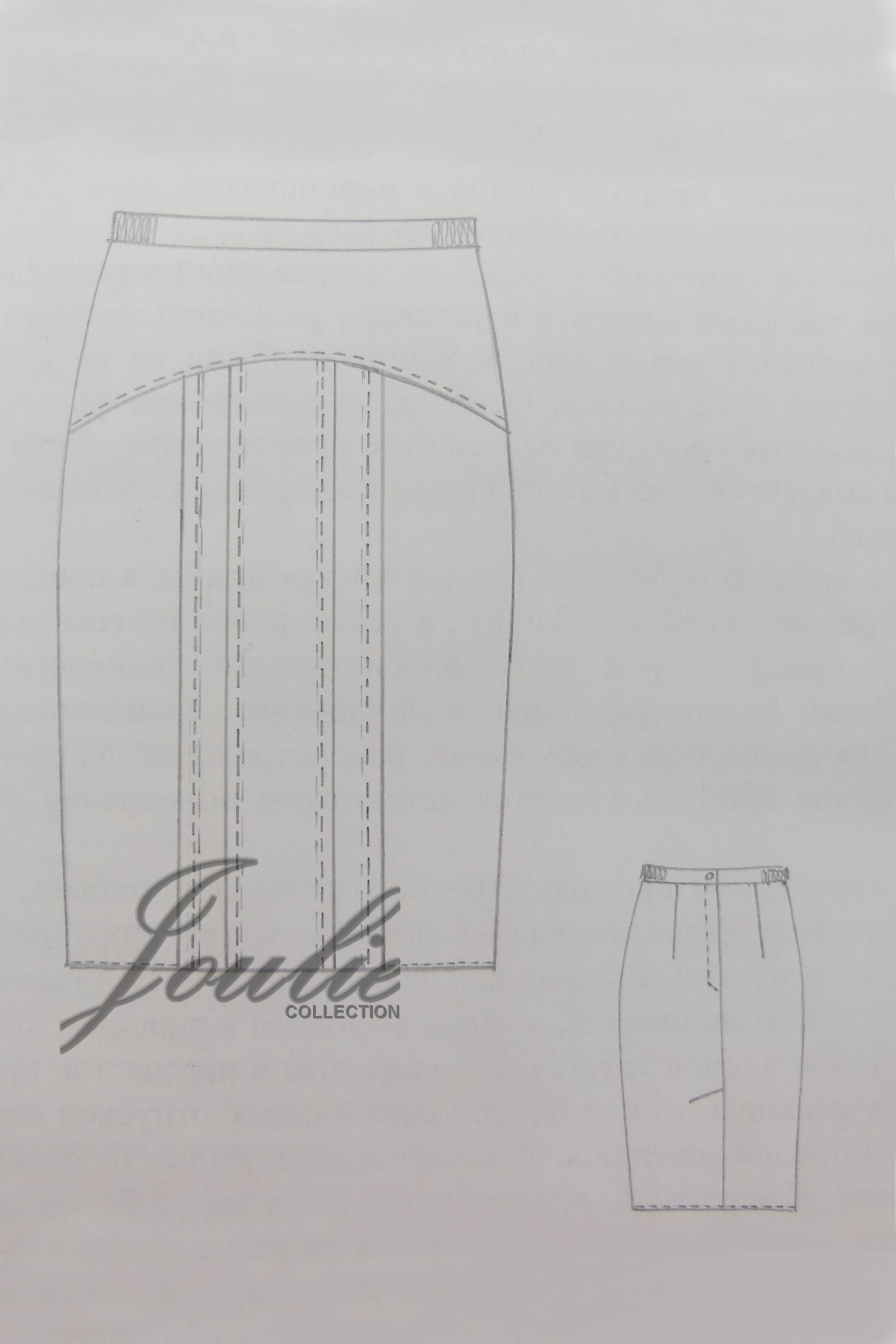 Прямая юбка, по переду кокетка и зашитые складки, сзади - шлица. В поясе по бокам - резинка, сзади- застежка. Юбка на подкладе.